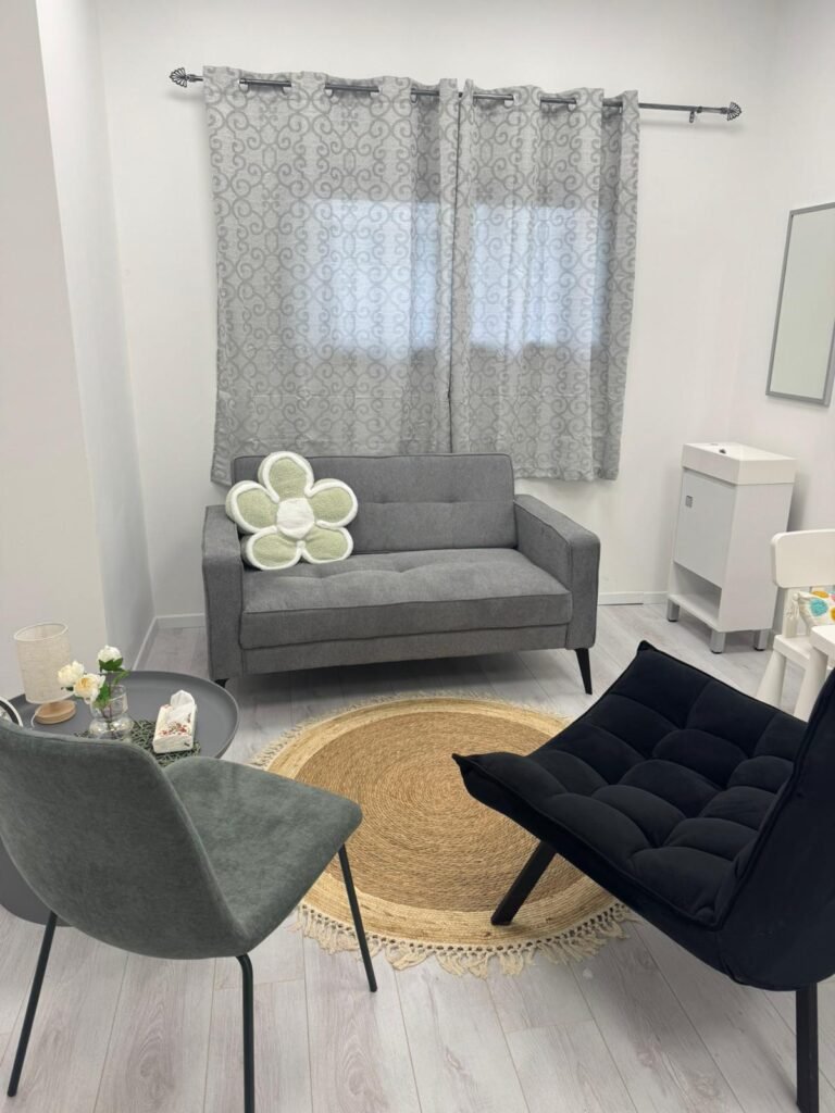 - חדר לטיפול משפחתי/זוגי: חלל מרווח ונוח המתאים למפגשים דינמיים עם זוגות או משפחות.