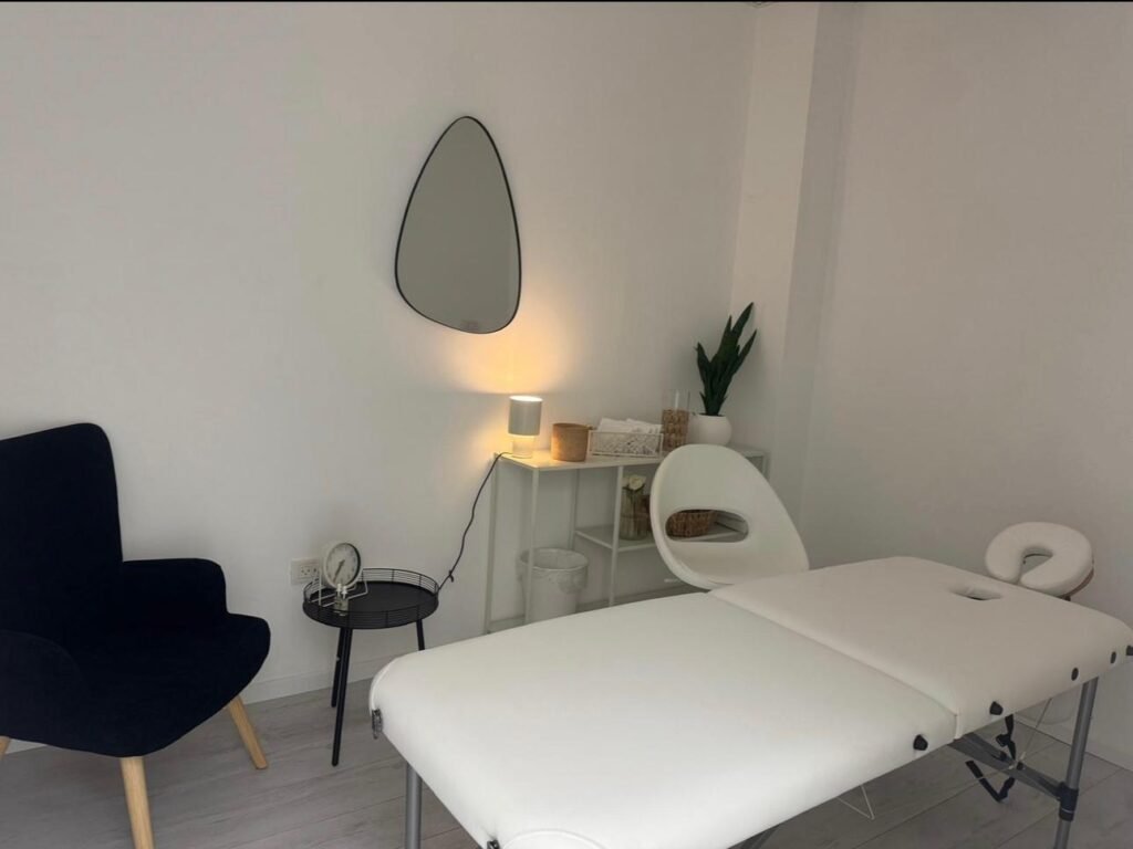 - חדר טיפולי במגע: מאובזר במיטת טיפולים, תאורה רכה ואווירה רגועה לטיפולי גוף-נפש.
